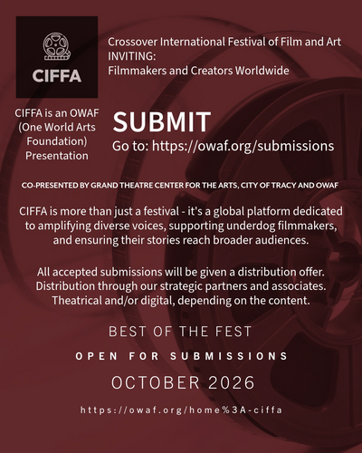 CIFFA (Crossover International Festival of Film and Art), co-presented with Grand Theatre Center for the Arts, City of Tracy and Non-profit organization OWAF (501 (C) (3) Tax Exempt Public Charity Organization).